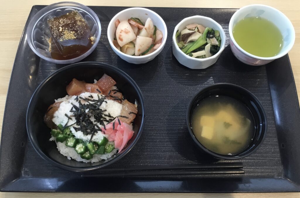 令和7年10月21日(火)のランチメニューは「まぐろのネバトロ丼」です。