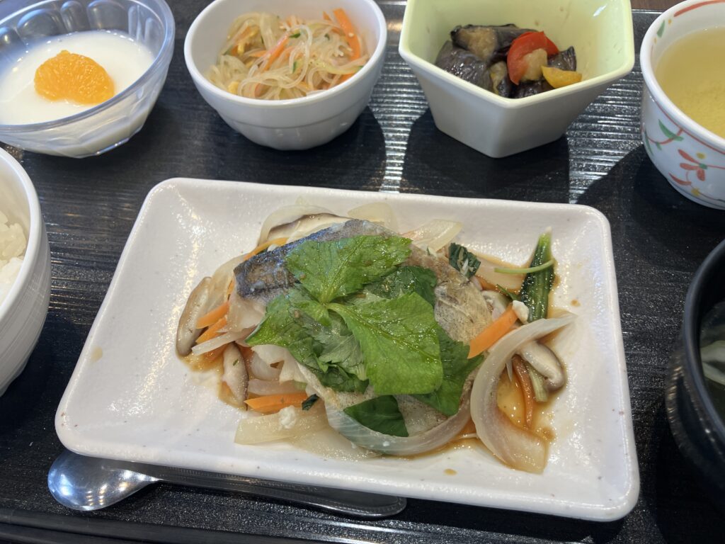 一度、鱈(たら)に火を通した後、再度、野菜(シイタケ、ニンジン、玉ねぎ、三つ葉)と一緒に蒸しました。