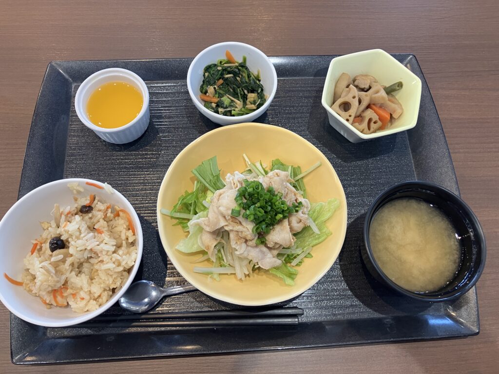 ・ 令和7年11月26日 和食選択メニュー 2025年11月26日 最終更新日時 : 2025年11月26日 caritas-uto Aメニュー:豚しゃぶ 本日の選択メニューは、きのこの炊き込みご飯がついたメニューです。秋の味覚、きのこを使ったご飯はお膳を豪華にしてくれます(^_-)-☆ Aメニューは、豚しゃぶです。豚しゃぶには甘辛いタレをかけて頂きます。新鮮野菜と一緒に口にほお張ると幸せな気持ちになりました。 Bメニュー:ホッケのつけ焼き カリタス有東の魚料理で人気の高い、ホッケ料理!!脂ののったホッケに舌鼓を打ちました!(^^)! \ 最新情報をチェック / FacebookXBlueskyHatenaCopy
