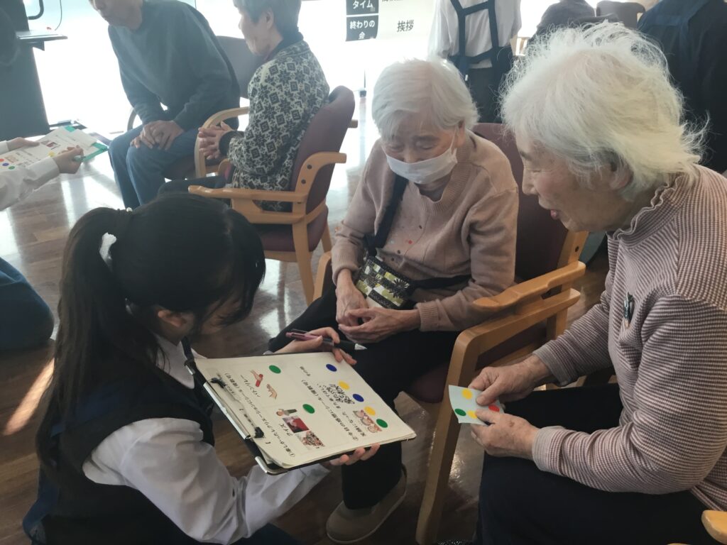 生徒さんとの交流はまるでお孫さんと交流するかのように、優しい笑顔が見られます。