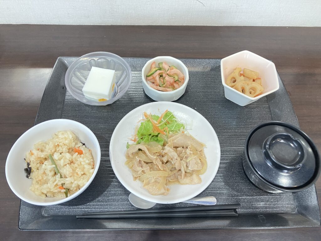 ・ 山菜おこわ アジフライ 豚の生姜焼き 2026年3月2日 最終更新日時 : 2026年3月2日 caritas-uto 本日のご飯は「山菜おこわ」、もちもちの食感と山菜がベストマッチです!! Bメニューの「アジフライ定食」です。本日一押し!アジフライの専門店ができるほど今がブームの料理です。 ちくわとキュウリの梅和えがアクセントになって、献立を引立てています。(^^♪ こちらはAメニューの「豚の生姜焼き」です。美味しいこと間違いない鉄板料理です。 AメニューかBメニューか!あなたはどちらがお好みですか!(^^)! \ 最新情報をチェック / FacebookXBlueskyHatenaCopy