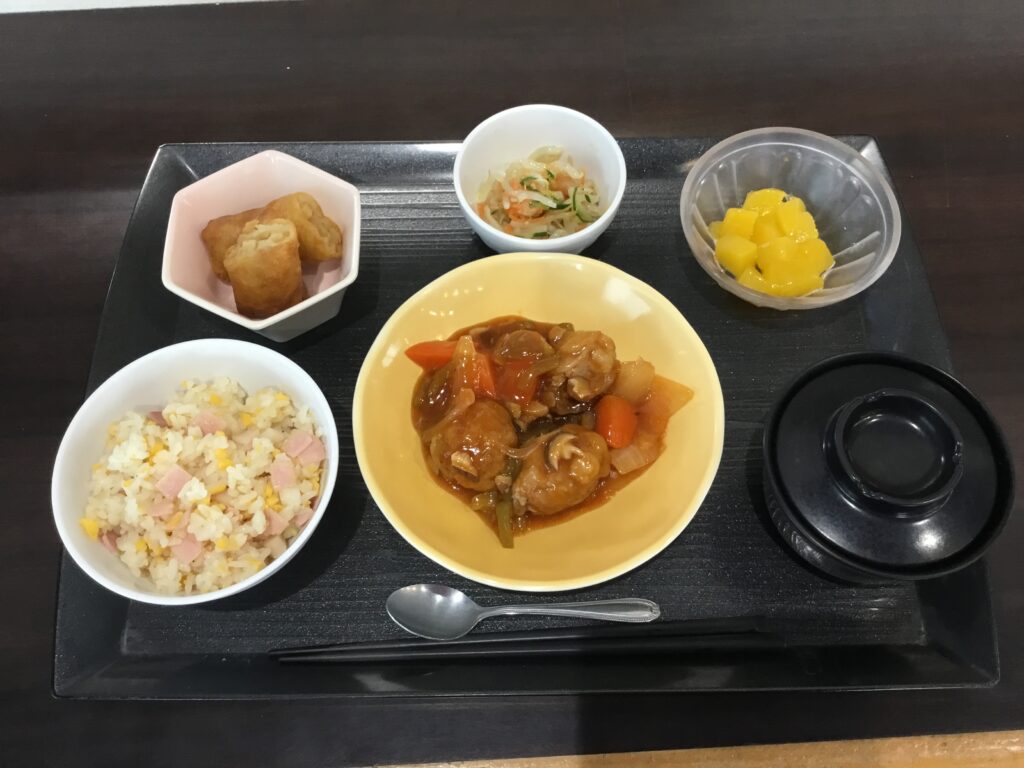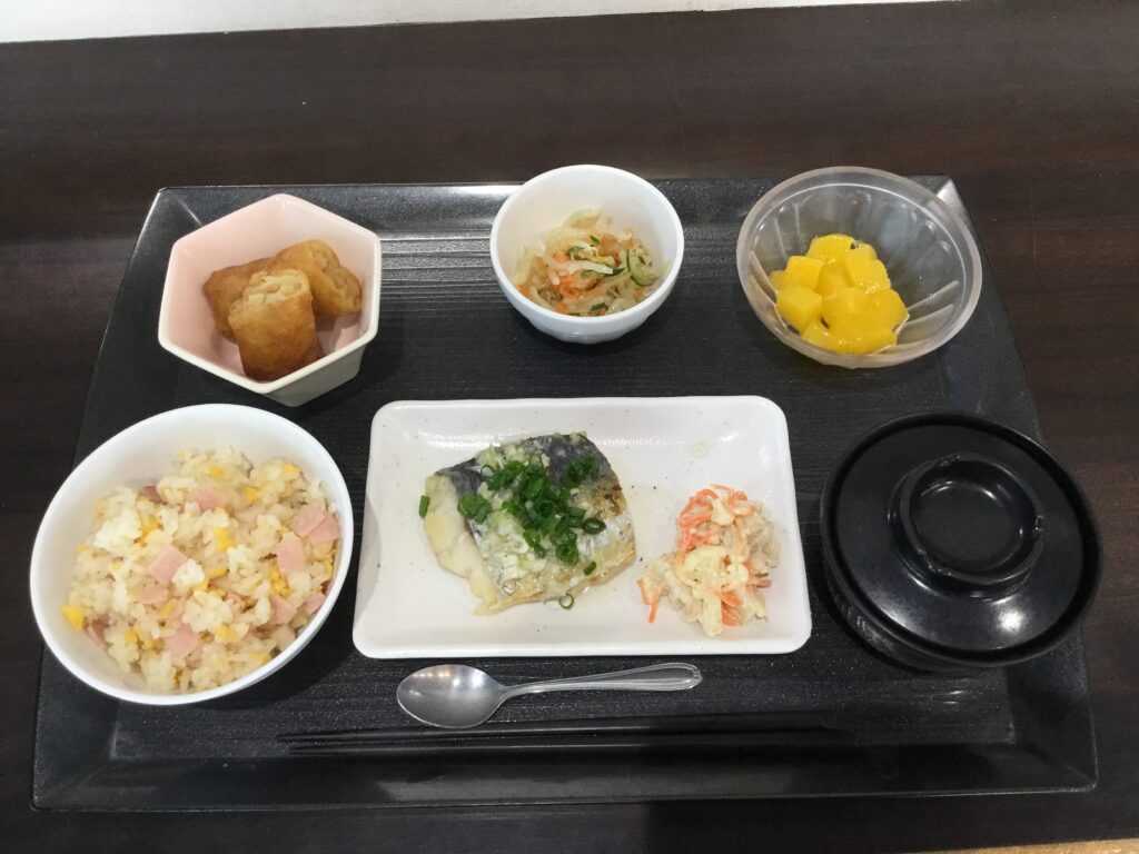 ・ チャーハン 酢豚 鰆のネギ塩焼き(選択メニュー) 2026年3月11日 最終更新日時 : 2026年3月11日 caritas-uto 今日は中華の日、ご飯はチャーハンでご提供いたしました。 今日のようにご飯が白米ではない、味付けご飯の日はAメニュー(肉料理)、Bメニュー(魚料理)の2種選択メニューとなります。 Aメニュー「酢豚」 Bメニュー「鰆のねぎ塩焼き」 \ 最新情報をチェック / FacebookXBlueskyHatenaCopy
