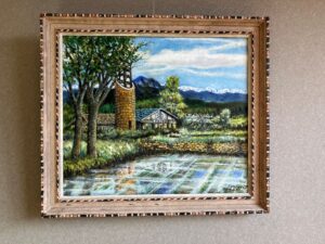 次に紹介するのは、安曇野のわさび田の風景を描いた油絵の作品です。